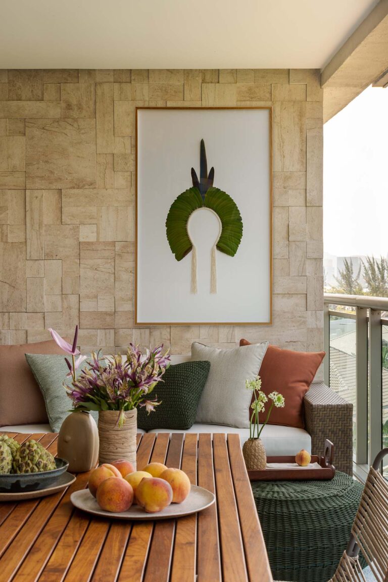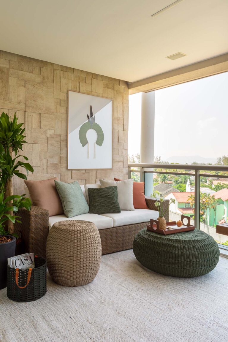 Situada em um generoso apartamento na Barra da Tijuca, esta varanda gourmet de 17m² foi redesenhada para ser o ponto de encontro de uma família conectada aos setores de tecnologia e finanças. O desafio central foi conferir uma nova identidade visual ao espaço, mantendo o layout original, mas elevando o padrão estético através de uma reforma pontual e sofisticada. O conceito do projeto ancora-se no uso inteligente de texturas naturais e na criação de uma unidade visual que organiza as diferentes funções do ambiente, transformando a área externa em uma extensão autêntica e acolhedora da zona social.