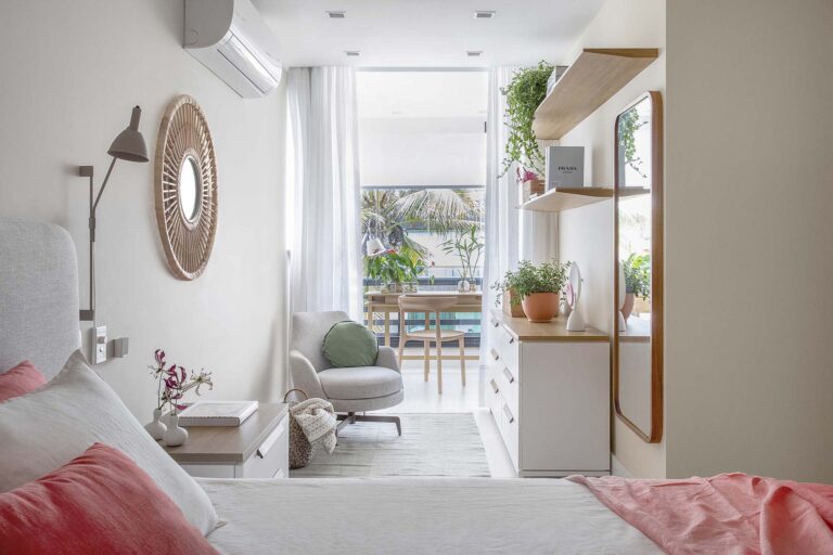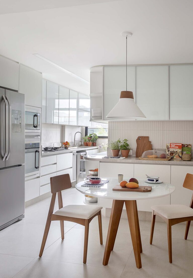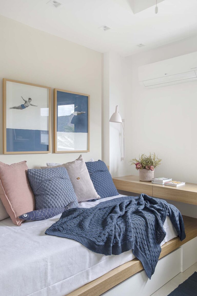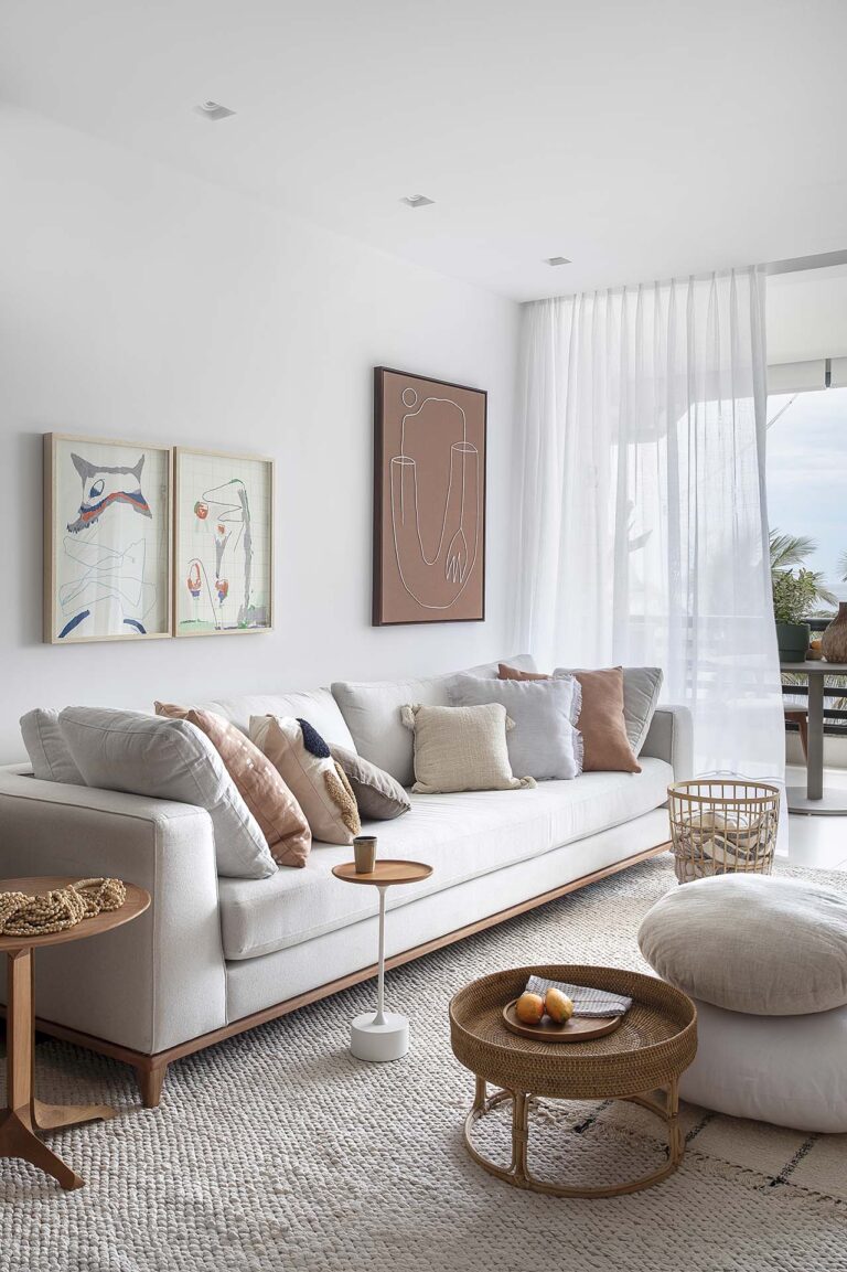 Este apartamento foi transformado em um refúgio para uma família que reside fora do Brasil e buscava um porto seguro para suas temporadas no país. O projeto de reforma completa buscou atualizar um imóvel antigo, valorizando a conexão privilegiada com a paisagem. O conceito central é um híbrido de estética escandinava e alma praiana.